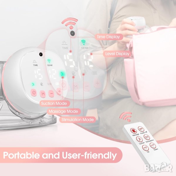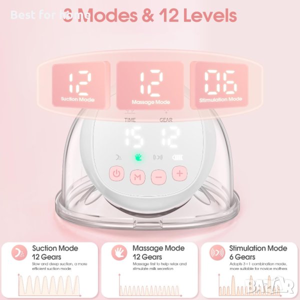 Повече мляко По-малко време: Надстроени от 9 на 12 нива на засмукване с 3 персонализирани режима, отговарящи на над 99% от взискателните нужди за засмукване в сравнение с най-конкурентните на пазара (само 60%). Преминете безжично със свободни ръце с най-големия капацитет от 1200 mAh, 140° устойчива на протичане масажна силиконова чашка с венчелистчета, интелигентно инфрачервено дистанционно управление, лесно изпомпване по всяко време, навсякъде безопасно и безболезнено.