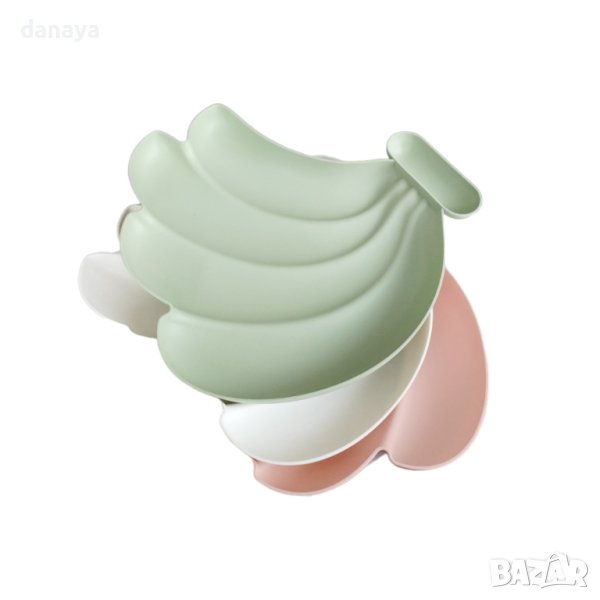 Пластмасова чиния, плато за сервиране на различни храни като плодове, разядки, маслини, ядки или мезета. Нестандартна форма на чепка банани, която няма да остане незабелязана.