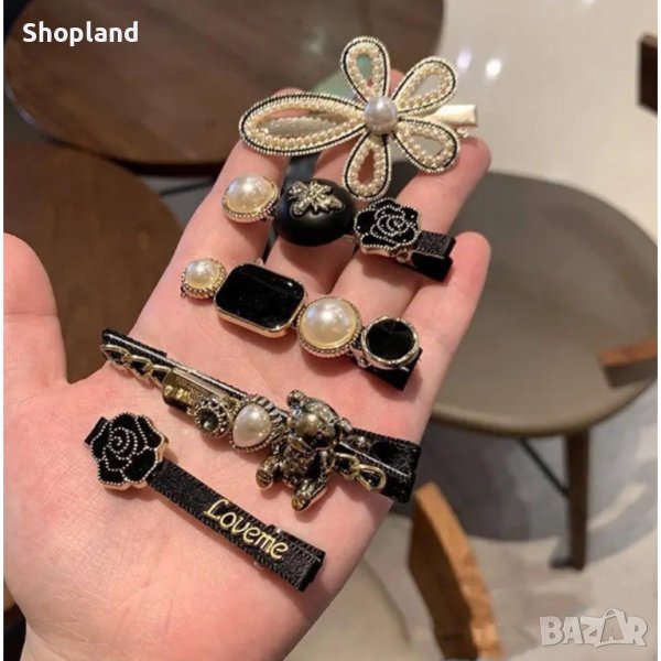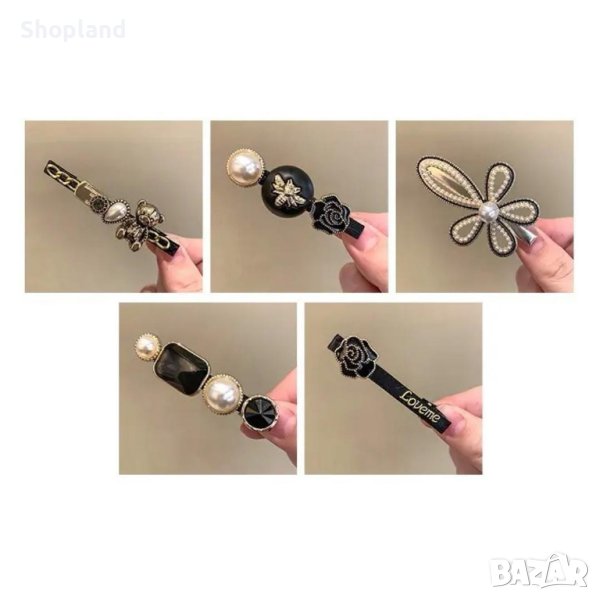 Представяме ви нашият елегантен комплект фиби за коса, които са перфектно допълнение към вашия стил. Тези чудесни фиби са изработени от висококачествена пластмаса, украсени с мъниста и кристали, които придават блестящ и стилен вид на вашата прическа.