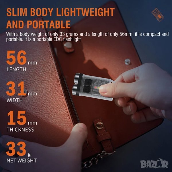 ♥♥Леко и преносимо LED фенерче - Мини фенерчето тежи само 33g и е с размери 56*31*15mm, което е достатъчно малко, за да се побере в ръката, джоба или ключодържателя ви , лесен за ежедневно носене и употреба