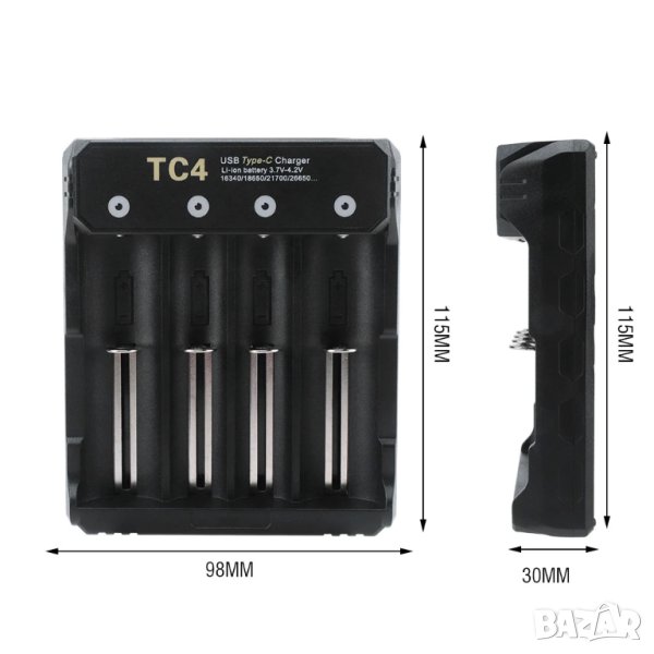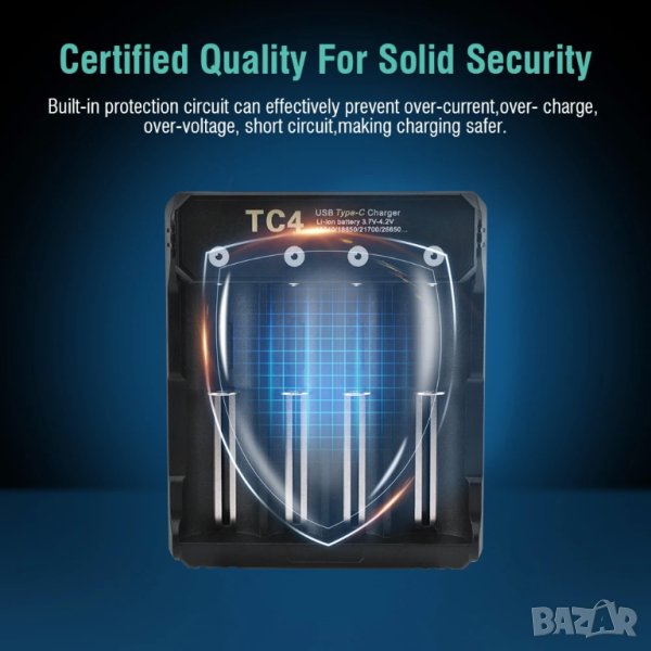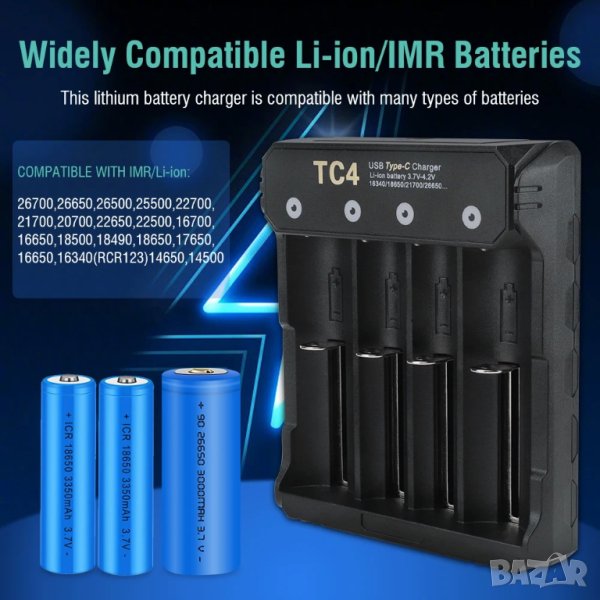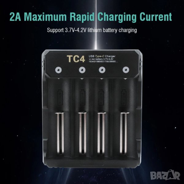 Boruit New Style Type-c Smart Charger 4.2v 18650 21700 26650 Battery Charger 4 Slots - Материал: ABS