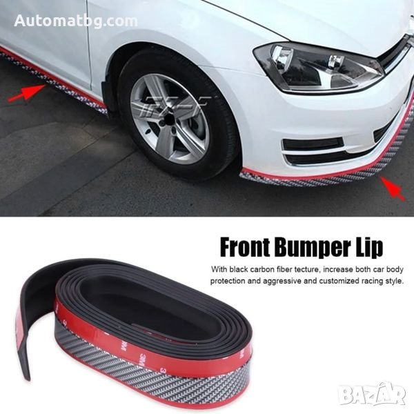 Лип спойлер за брони и прагове Automat, Универсален, 5см, Карбон с червен кант.