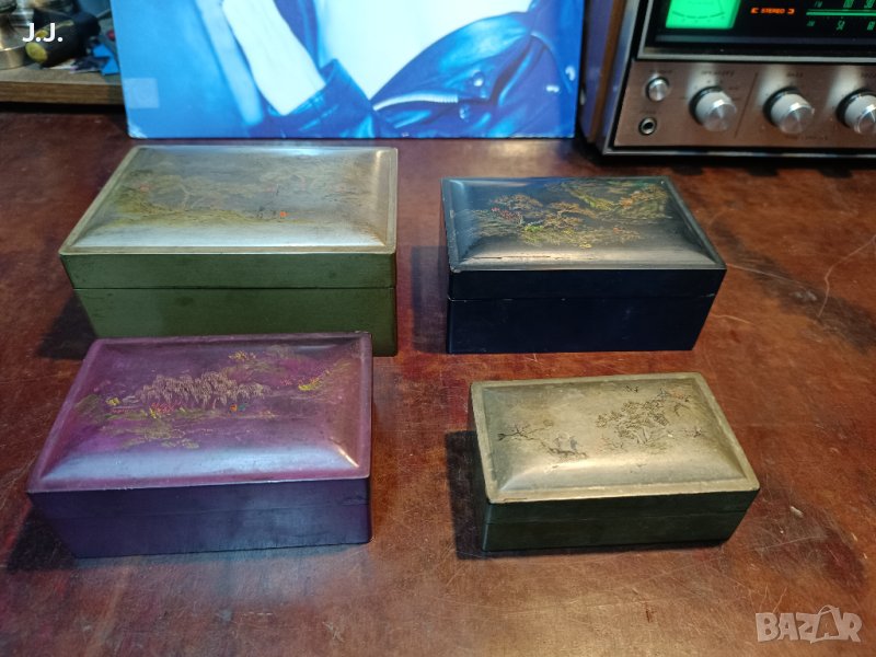 Винтидж кутия папие-маше / Papier Mache ,сет от 4-броя → Обява 43944593
