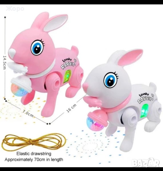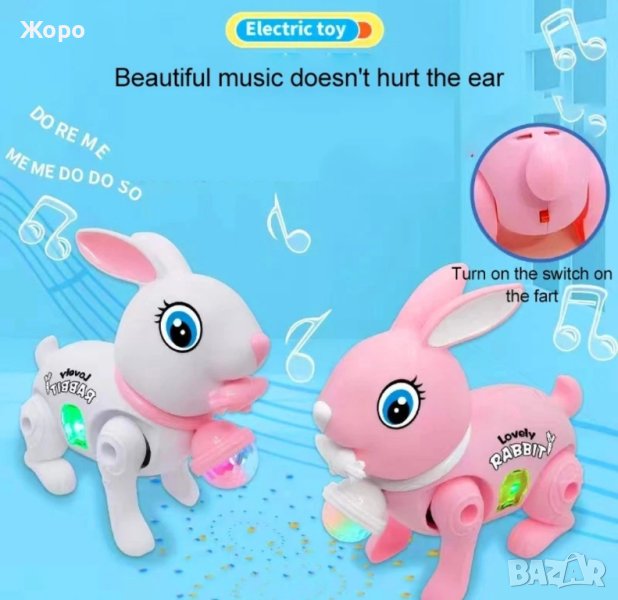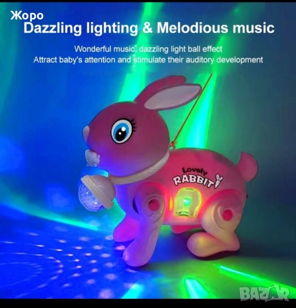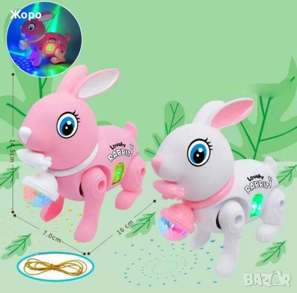 Детска интерактивна играчка"Ходещ заек с звук и луминесцентна 3D светлина