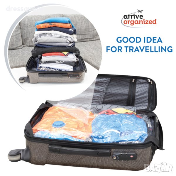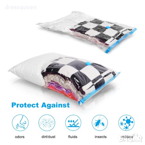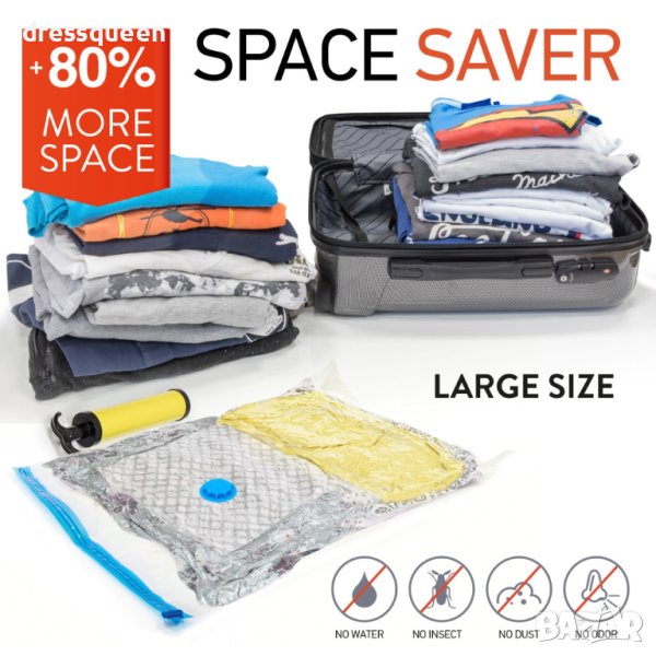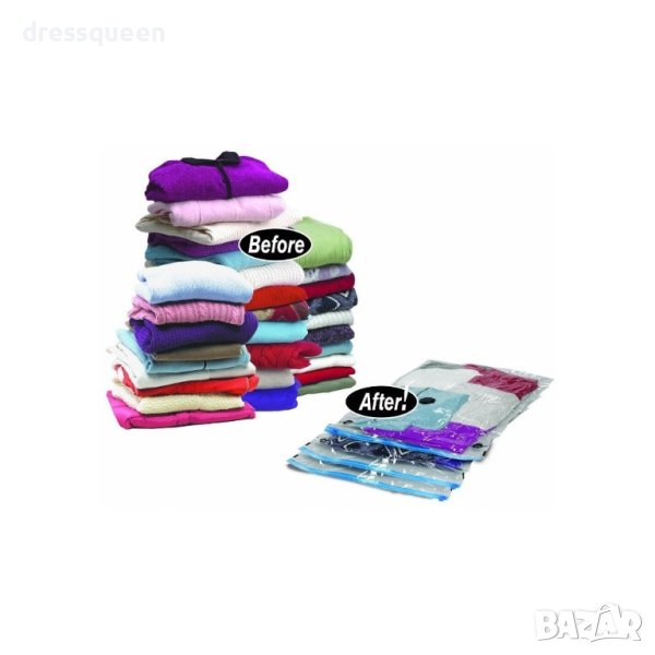 Те са изключително лесни за употреба - подреждате предварително изпраните и изсъхнали вече дрехи, свързвате прахосмукачката и изтегляте въздуха от торбичката. По този начин спестявате до 75% повече място, като същевременно предпазвате Вашите дрехи от миризми, влага, прах. Вакуум торбите са отлично средство за сортиране и съхранение на дрехи извън сезона. Също така са особено полезни при събиране на повече багаж в куфара за Вашето пътуване. Вакуум торбите са предназначени за многократна употреба.