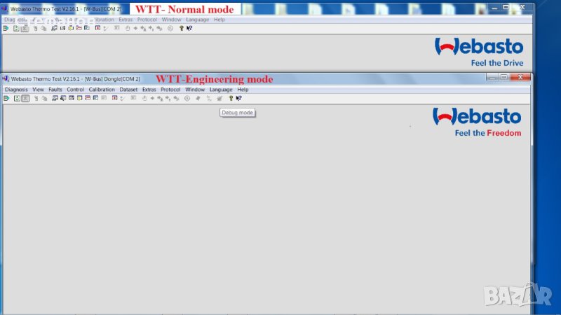 Интерфейса е комбиниран - автоматично разпознава Eбер и Wебасто без превключватели и копчета. Отключва и префлашва печките.