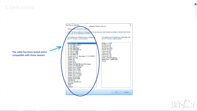 Webasto WTT V3.8 new version, кабел Eberspacher EDiTH-S4 V4-F диагностика Вебасто Ебершпрехер