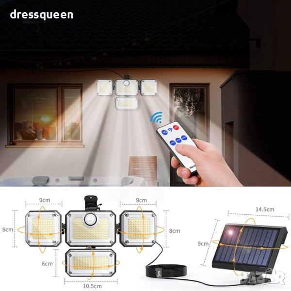 333LED Соларна лампа с 333 LED диода- Водоустойчива