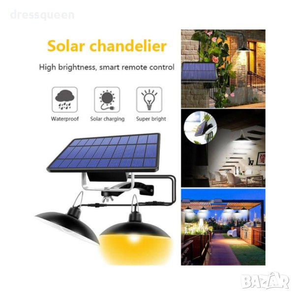 Тези висящи пендел лампи със соларен панел е идеалното решение за осветление на улични, градински или къмпинг пространства. Снабдена със 3-метров кабел, тя предлага 3 нива на контрол на яркостта и може да бъде използвана в радиус от 3 метра от соларния панел. Соларният панел разполага с копче за включване и изключване на светлината, а чрез дистанционното управление можете да регулирате яркостта и да зададете времето на осветяване. Лампата не се включва автоматично, а може да бъде включена или изключена с помощта на дистанционното управление.