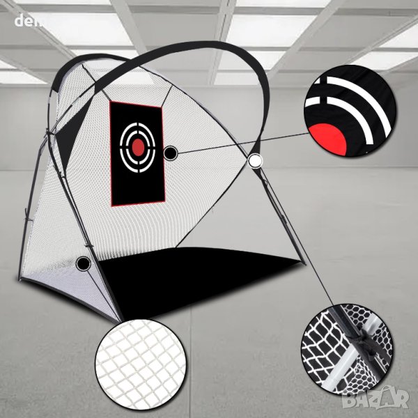 Тази мрежа за голф е изработена от издръжлив найлонов материал, който е устойчив на износване и UV лъчи. Пръчките са здраво заварени и устойчиви на огъване. Сглобява се лесно за минути и може удобно да се разглобява и съхранява в включената чанта. Размерът на мрежата и височината на точката на удар отговарят на международните стандарти, осигурявайки удобно и приятно изживяване при игра на голф. Включеното ръководство предоставя ясни инструкции за бърз и лесен монтаж.