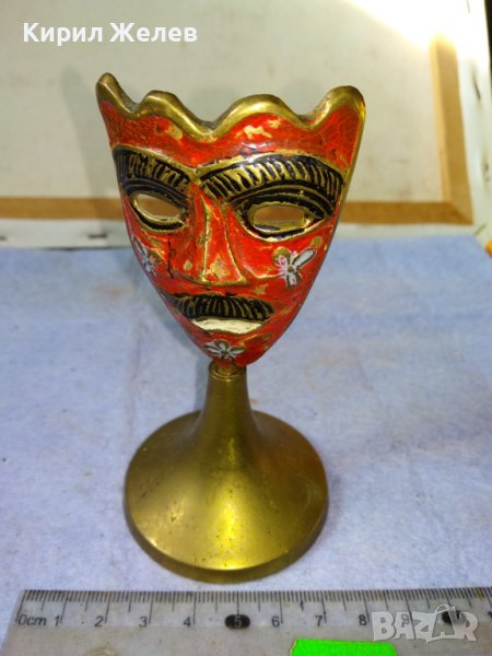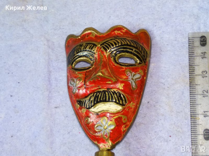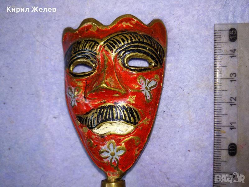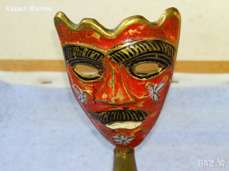 Стара АЗИАТСКА ФОЛКЛОРНА ТРАДИЦИОННА БРОНЗОВА МАСКА ЦВЕТЕН ЕМАЙЛ РЪЧНА ХУДОЖЕСТВЕНА ИЗРАБОТКА 42692