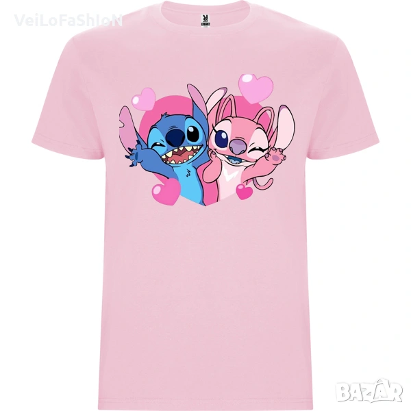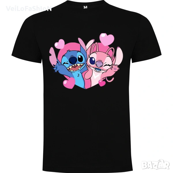 Новa сладка детска тениска в бял, черен или розов цвят с героите Стич и Ейнджъл (Stitch