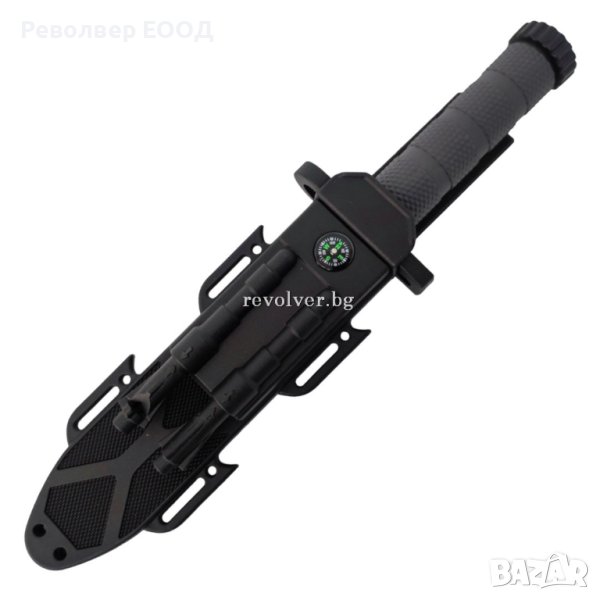 Тактически фиксиран нож-щик за оцеляване, окомплектован с инструменти за оцеляване при екстремни ситуации.