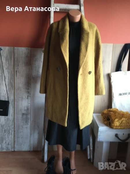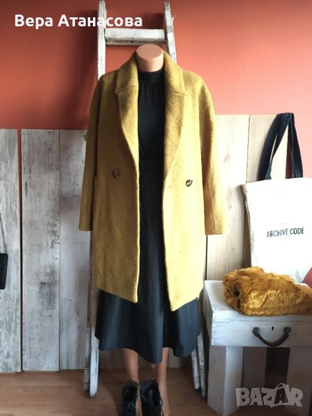👢 Тренди палто в цвят горчица със съдържание на вълна🧡 м/л 💄 → Обява 43955018