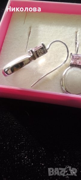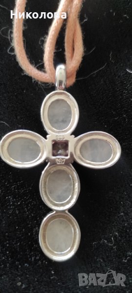 Комплект от сребърен кръст и обеци с розов кварц. Печати-на снимките.