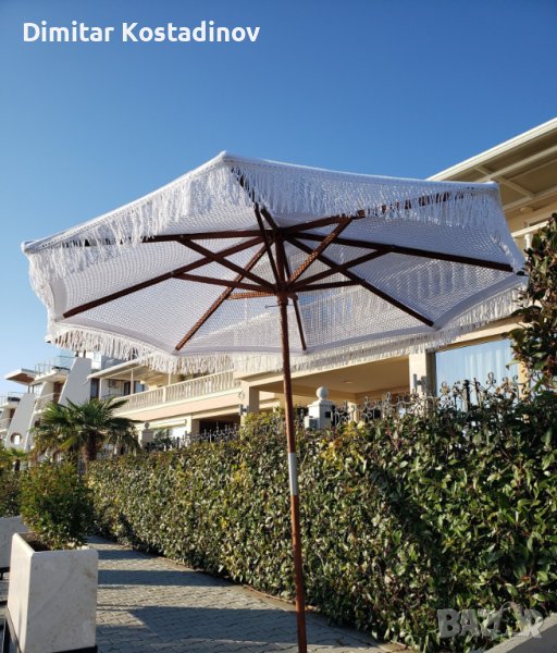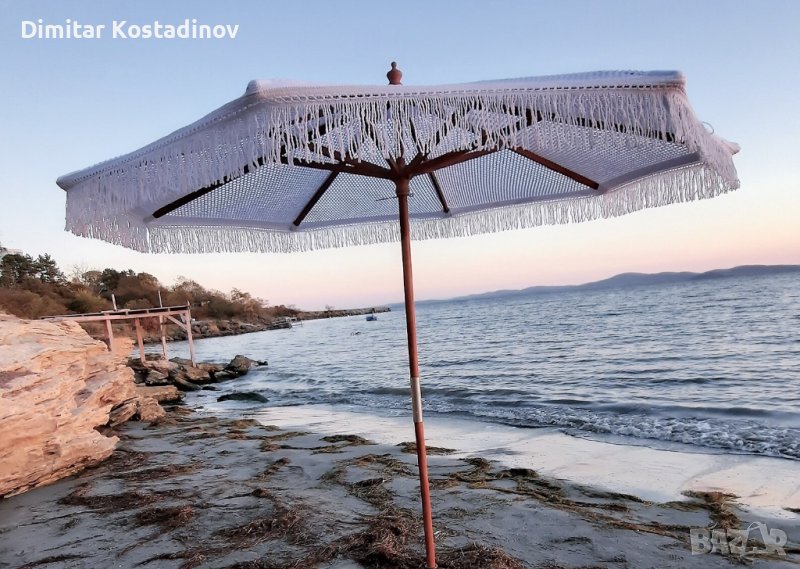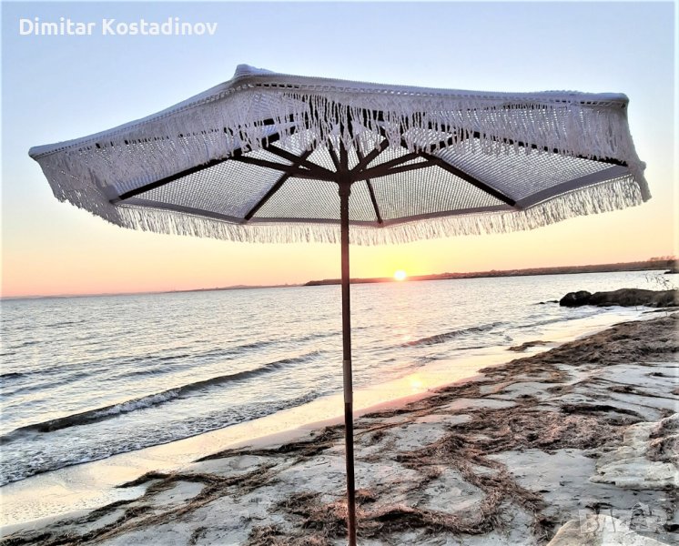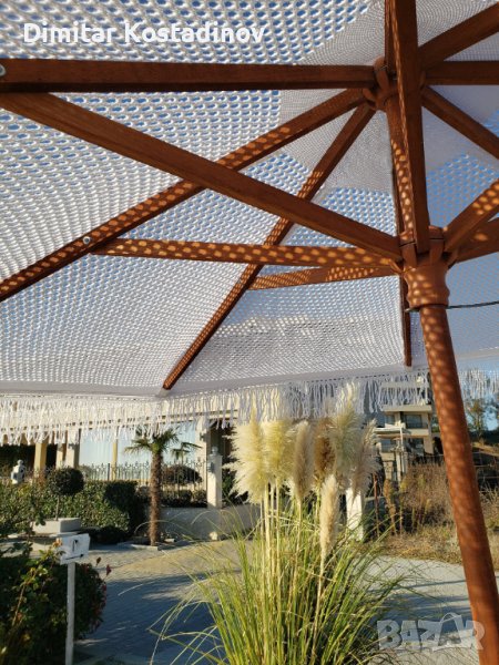🌞🏖Открийте красотата и естетиката на уникалния модерен плетен чадър в Бохо стил от памучно въже. Стабилен пилон и конструкция изработени от дърво - Ясен. Размерът е 2.3 м, има 8 ребра. Този чадър е истинско бижу привличащо внимание към вашата тераса, ресторант или плажен клуб. Използвайте го, за да създадете вашата уникална атмосфера!