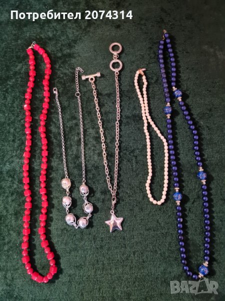 Гердани и гривни различни цветове и дължини. Повечето са пластмаса, но има и от камъни. Много добре запазени, някои не са използвани никога. Цените са от 6 до 16 лв. При интерес, пишете, ще отговоря.