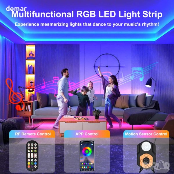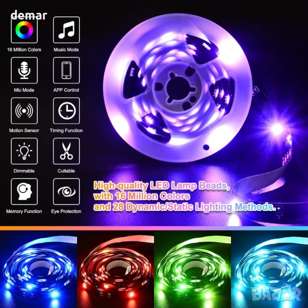 Светодиодната лента със сензор за движение предлага три интелигентни режима на отчитане: отчитане на движение, постоянно осветление и нощно отчитане за адаптивно осветление. Можете да го управлявате чрез сензор за движение, дистанционно управление или Bluetooth приложение, което позволява автоматична или ръчна работа и дори синхронизиране на музика. Функцията за памет запазва вашите предпочитани настройки. Отличаващ се с LED перли с висока яркост, тя осигурява живо осветление с 16 милиона цвята и 29 режима на осветяване. Лесна за инсталиране със залепваща подложка, тази универсална LED лентова лампа е подходяща за различни пространства, от спални до стаи за игри, подобрявайки вашата среда без усилие.
