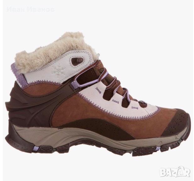 Моделът на обувка Merrell Thermo Arc 6, който е оценен от жени, които обичат кафявите тонове, е правилният избор за тези, които се интересуват от спортове на открито. Моделът, който едновременно изглежда добре и държи топло с вълнения си интериор, е оживен с черния си пръст и пета. Подчертавайки качеството си с логото на марката отстрани, обувката Merrell осигурява регулируемост със своята структура на връзване. Технически свойства: Aegis Microbe Shield Antibacterial Inner Lining; предотвратява образуването на бактерии и миризма. Основа Vibram; Въпреки че обещава комфорт със своята лека и гъвкава структура, той осигурява максимална адхезия върху почвата благодарение на здравата си структура. Ортолитна технология; Благодарение на дихателната си структура, той предотвратява образуването на бактерии и гъбички. Технология Q Форма; Това е технология, съвместима с дамските стилове на ходене. Тя ви позволява да прекарате приятен ден, като осигурявате комфорт на всяка стъпка. Вътрешна облицовка Primaloft; Притежава водоотблъскване и осигурява висока изолация. Термална подложка Polartec; Поддържа краката топло, като осигурява топлоизолация. Има дишаща структура и функция за бързо изсъхване.