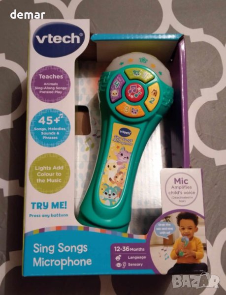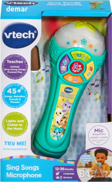 Микрофонът VTech Sing Songs е възхитителна образователна играчка, която съчетава музика и обучение, насърчавайки децата да пеят заедно със своите приятели животни и да подобрят ранните езикови умения. Той разполага с четири бутона с животни, запознавайки децата с различни животни, техните звуци и числа, подпомагайки когнитивното развитие чрез интерактивна игра. Микрофонът е пълен с музикални забавления, включително специален музикален бутон, който възпроизвежда колекция от оживени мелодии и песни, които пеят заедно, забавлявайки децата. В допълнение, той предлага завладяващ светлинен дисплей, който се синхронизира с ритъма на музиката, създавайки очарователно сетивно изживяване. С 15 мелодии и 2 песни за пеене, този стилен микрофон осигурява изобилие от съдържание, насърчавайки езиковите и музикалните умения на децата.