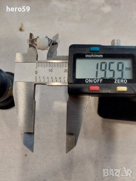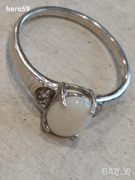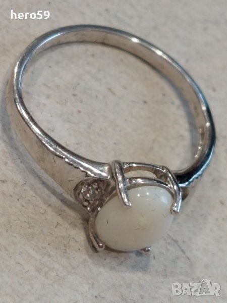 За продажба дамски сребърен пръстен с инкрустиран бял опал и диамантчета-два броя.