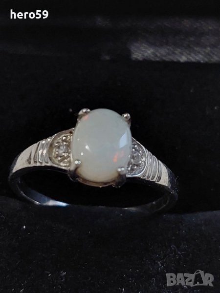 Дамски сребърен пръстен с опал и две малки диаматчета → Обява 43960218