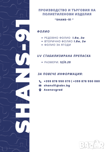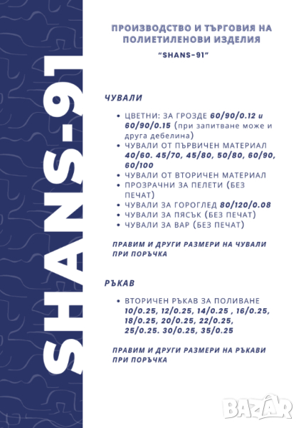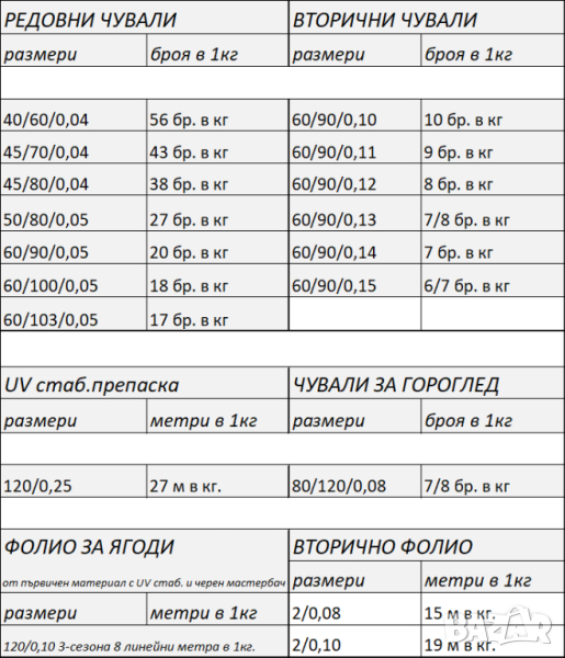 Полиетиленови изделия / Найлон / Чували / Фолио / Ръкав / Препаска → Обява 43960586