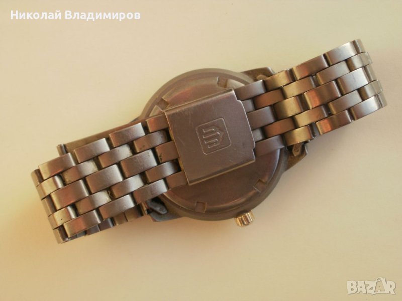 Часовника работи точно.Всичко по него е наред.Ако имате въпроси моля питайте.Коронката е на винт. Диаметъра на часовника без коронката е 36 мм. и дебелина 9 мм.