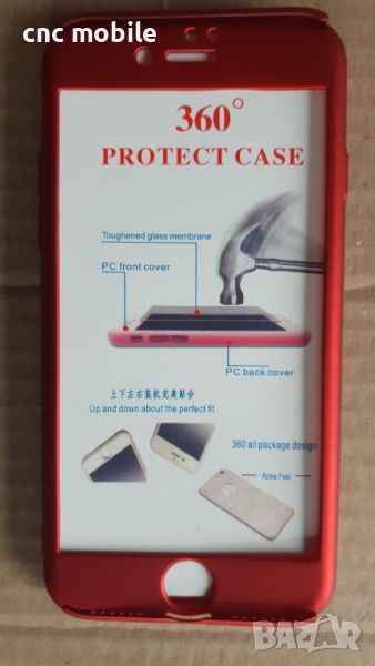 Твърд калъф 360° със стъклен протектор за екрана - червен - 9лв.
