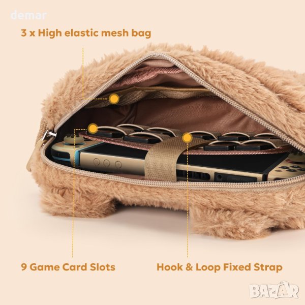 Този комплект 15-в-1 NS Switch Case Bundle е цялостен комплект аксесоари, пригоден за традиционния (2017) модел Switch, с изключение на Switch Lite и Switch OLED. Пакетът включва калъф за пренасяне на Switch, два калъфа за Switch Joy-Con, докинг защитен калъф за Switch, калъф за игра, два протектора за екрана, шест капачки за палеца, сладка висулка и подвижна презрамка. Калъфът за носене разполага с голям капацитет с три мрежести отделения за допълнителни аксесоари, девет слота за карти за игри и велкро лента за фиксиране на конзолата. Неговият дизайн с шнур осигурява лесен достъп. Комплектът разполага с шарка на очарователна кафява мечка, съчетаваща стил със защита. Ултратънкият 0,25 мм протектор на екрана поддържа чувствителността на сензорния екран и е съвместим с докинг станция, което позволява безпроблемно прожектиране на телевизор. Този пакет "всичко в едно", идеален за ентусиасти на Switch, е перфектен подарък за игри в движение.