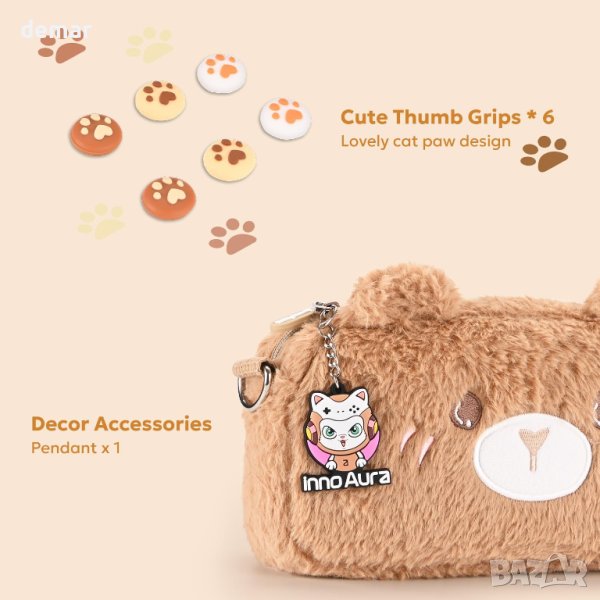 innoAura 15 в 1 Калъф за носене и аксесоари за NS Switch (кафява мечка)