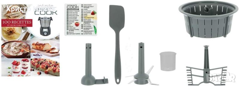 Compact Cook Infinity е многофункционален готварски робот от последно поколение. Съчетава 12 функции в един уред: варене, топене, захващане, задушаване, готвене на пара, смесване, нарязване, смесване, разбиване, месене, емулгиране и смилане. С 34 автоматични програми, потребителят се насочва стъпка по стъпка през рецептите и се насочва независимо от нивото. Компактният Cook Infinity осигурява достъп до всички домакински задължения. Супи, кадифени, пюрета, яхнии, ризото, бешамел... дори тесто за хляб или сорбе! Доброто хапване ще бъде истинско удоволствие. Позволява ви да изпълнявате всичко от предястие до десерт за рекордно време, без усилие и без наблюдение благодарение на таймера в ръчен режим от 0 до 90 минути. С купа с капацитет от 3,5L (използваем капацитет 2L), ви позволява да готвите 4 6 души, без да влизате в кухнята. Дизайнът е специално проектиран да позволява равномерно готвене с температура на нагряване до 120°C. Сензорният екран и дизайнът пасват на всяка кухня.