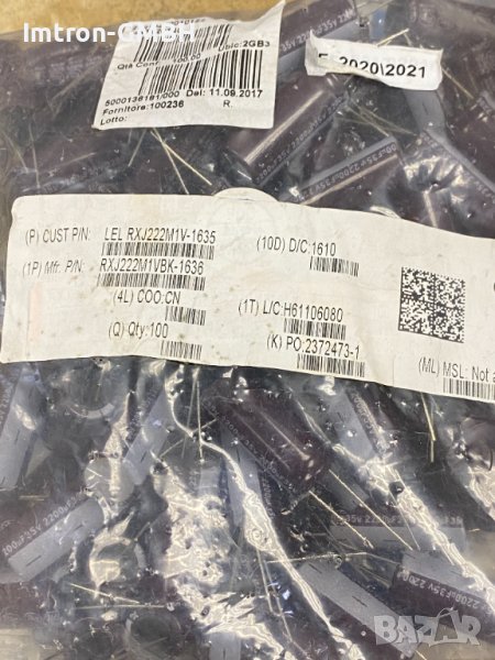 Кондензатор 	2200 uF  / 35V / RXJ222M1VBK-1635, снимка 1 - Друга електроника - 43968233 Кондензатор 	2200 uF  / 35V / RXJ222M1VBK-1635, снимка 2 - Друга електроника - 43968233 1/2