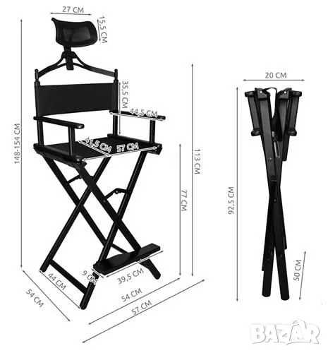 Стол за грим / Грим Стол / Гримьорски стол - Алуминиев с облегалка за глава