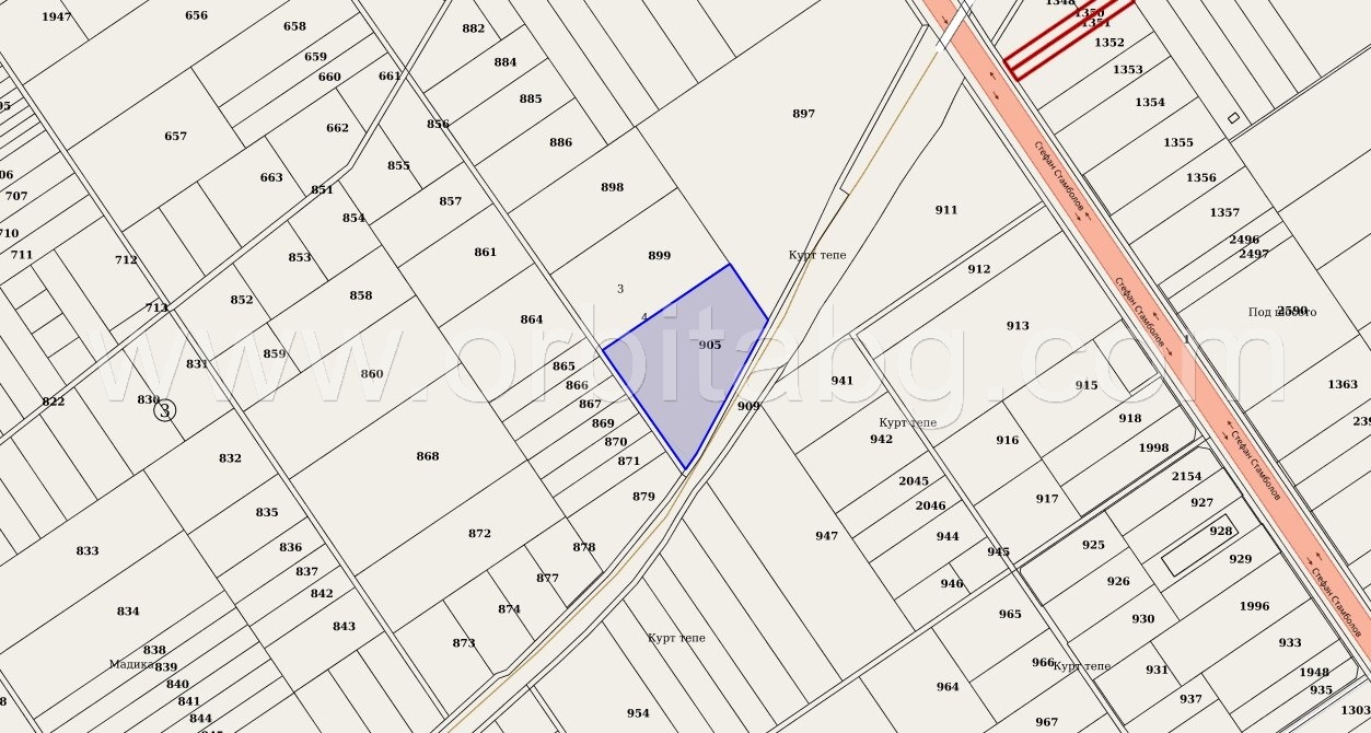 Агенция ОРБИТА продава инвестиционен имот УПИ с площ от 19000 кв.м. в местността Курт тепе. Имотът има 200 м. лице на новия обходен път на гр. Бургас, водещ директно към цялото южно черноморие и е на 200 м. от магистралата за София.