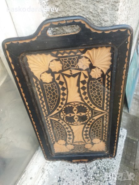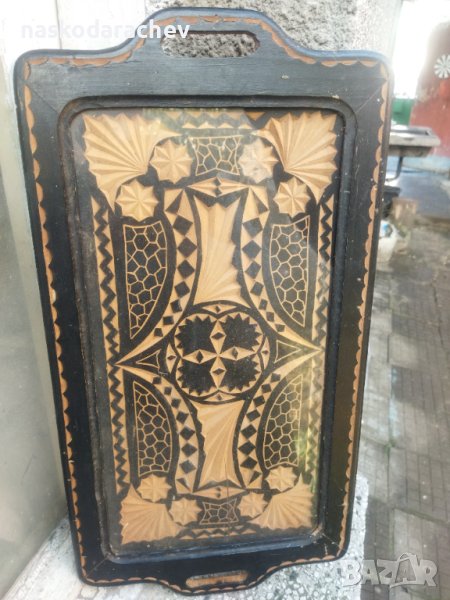 Уникален старинен поднос за сервиране с дърворезба → Обява 43972412