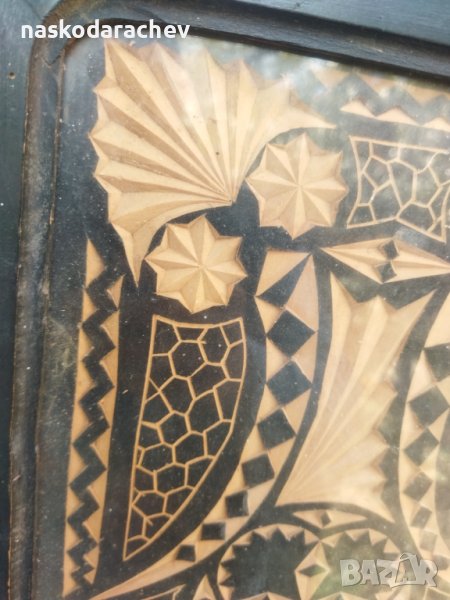 Уникален старинен поднос за сервиране с дърворезба, красива дървена табла, тавичка, плакет, нуждае се от реставрация и освежаване - има пукнатина и стъклото е за смяна, видно на снимките, цена - 100 лв
