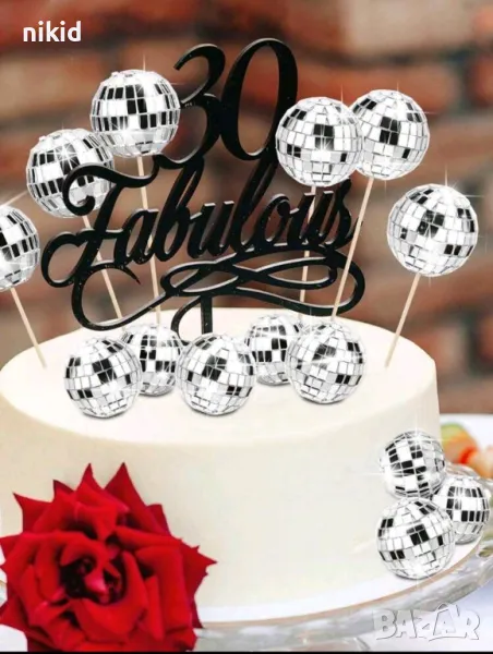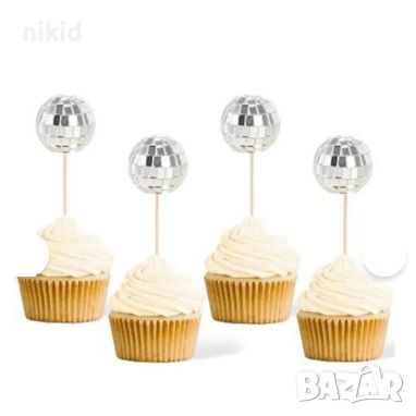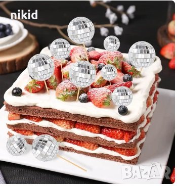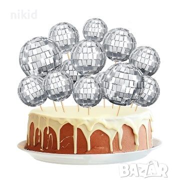 Лазер Диско топка топки топер на клечка за украса декор на торта → Обява 43973122