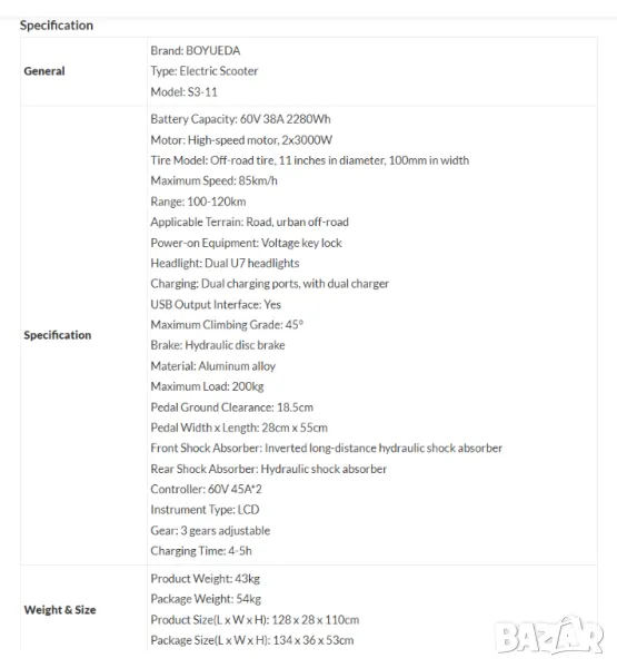 Електрически скутер/тротинетка със седалка BOYUEDA S3 6000W 38AH