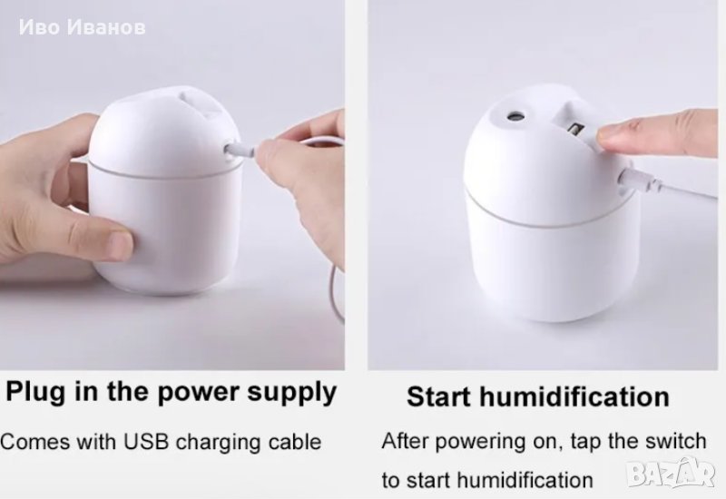 режим свети.Комплекта съдържа: Овлажнител, USB кабел за зареждане. Капацитет
