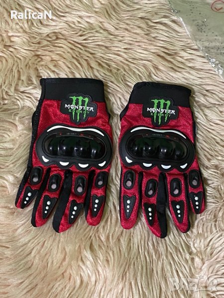 Чисто нови ръкавици за мотор Monster с протектори/Черно с червено/Размер L → Обява 43975519