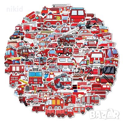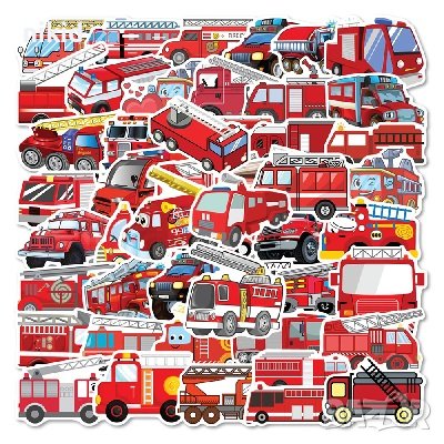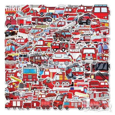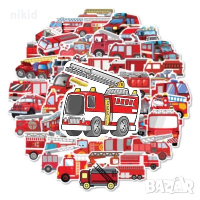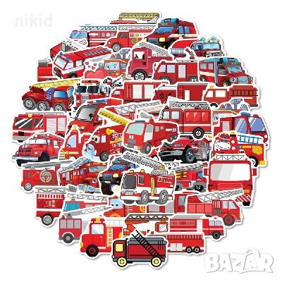 50 бр Пожарна пожарникарска кола самозалепващи лепенки стикери за украса декор → Обява 43976484