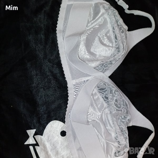 Чашката е от сатенирана материя и дантела с тънки подплънки от долната вътрешна част за повдигане на бюста, без банели, с удебелен подсилени,регулируеми презрамки триредово закопчаване, Подгръдна 120 до 150 см еластичност. Сниман е етикета 130 E . Няма следи от употреба.