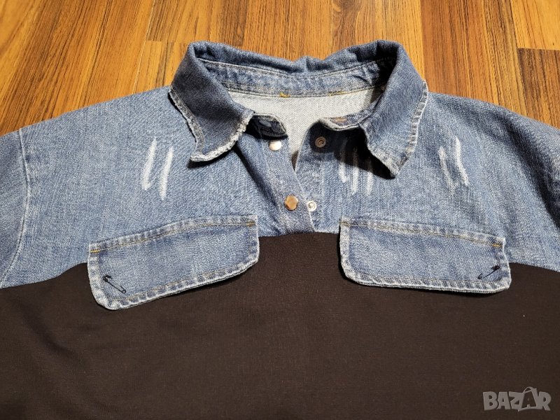 Рокля/туника, комбинация от черно трико и дънков плат в горната част. Българско производство. ГО-120см, Дължина 86см.