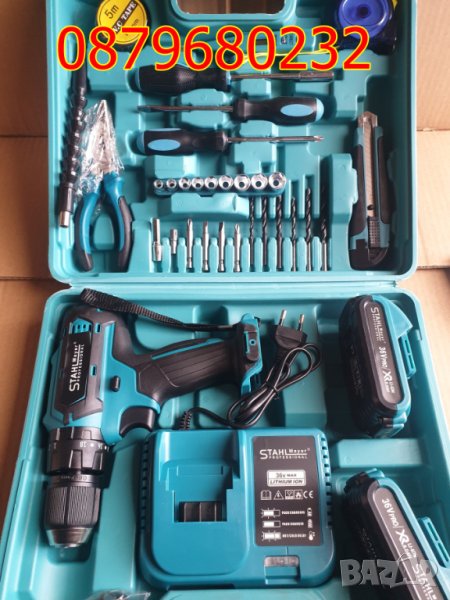 Stahlmayer ВИНТОВЕРТ - 36В V,5.00 AH LI-ION, 52NM, 13MM нов акумулаторен винтоверт42NM, 13MM ПАТРОННИК, 2 БАТЕРИИ, ЗАРЯДНО И КУФАР С КОМПЛЕКТ СВРЕДЛА И НАКРАЙНИЦИ
