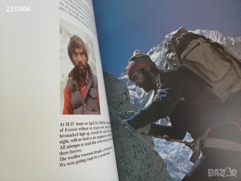 Уникална книга/албум, посветена на българската Хималайска експедиция от 1984, нова, единствената забележка е по обложката, на последната снимка го има. На английски език, твърди корици, 170 стр., крайна цена.