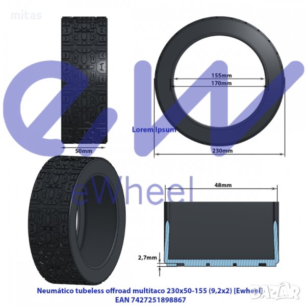 * Гумата е безкамерна, съвместима с 8.5 инча вътрешна гума и нетно тегло 460г.