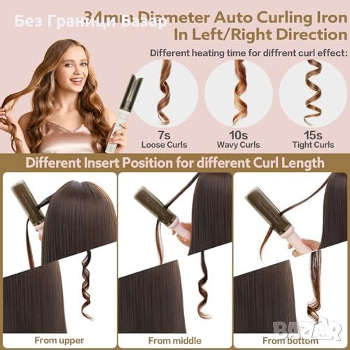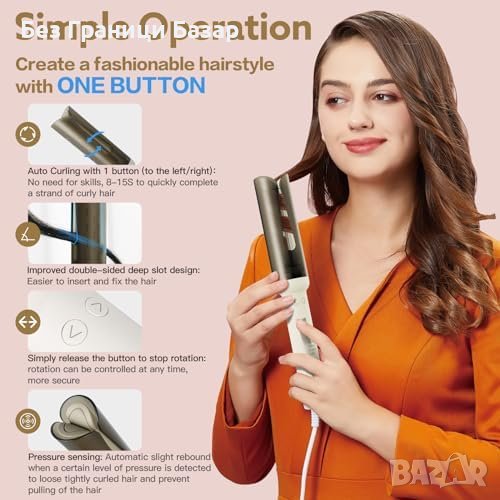 Автоматично Къдрене: Едно натискане за лесно и безопасно къдрене, превключване между ляво и дясно завъртане.