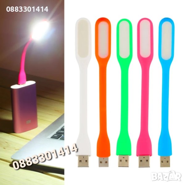 USB LED лампа за компютър, батерия, адаптер от зарядно устройство и др.