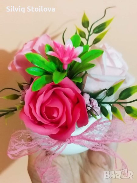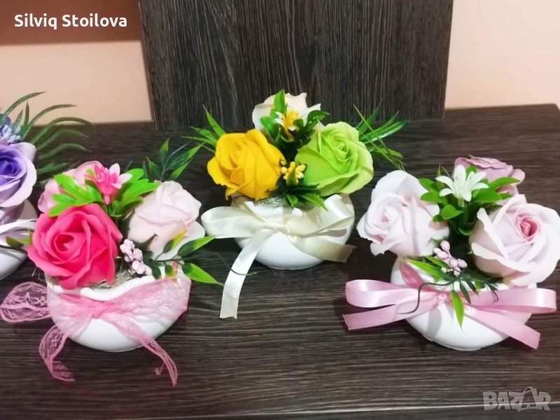 ‼️НОВО‼️За празника на жената зарадвайте дамите с керамична кашпа със сапунени цветя → Обява 43985820